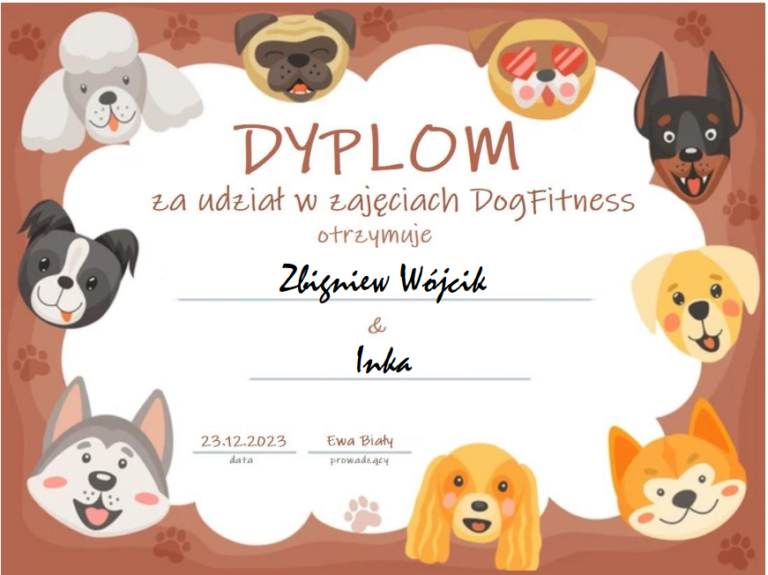 Otrzymaliśmy zaszczytne dyplomy za udział w psim fitnessie! Nasza Inka nie tylko dostarcza nam