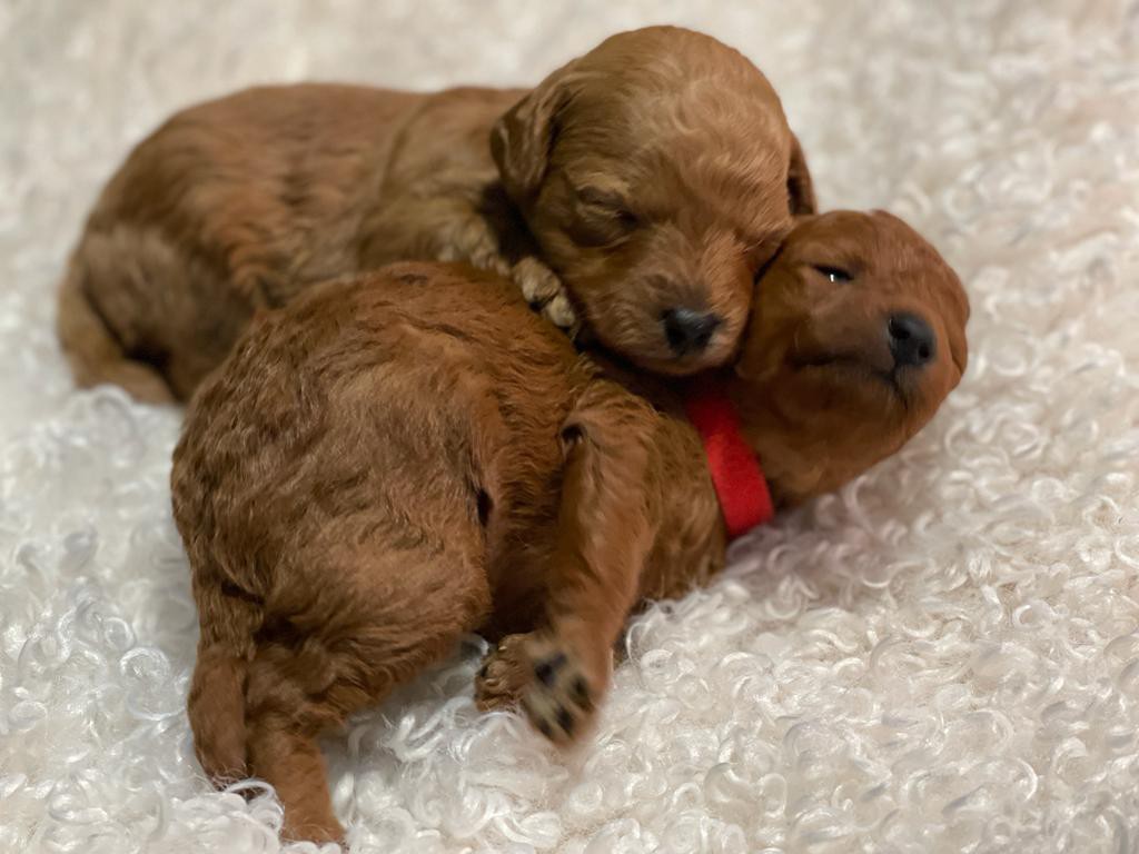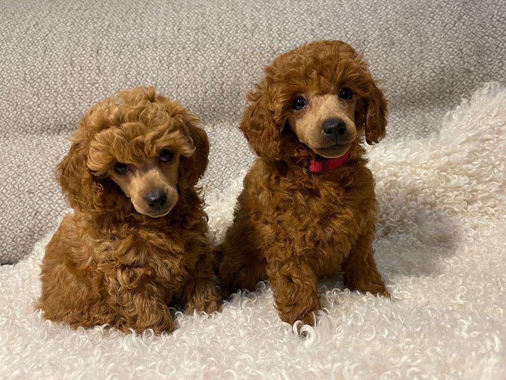 – Od dnia narodzin byliśmy w pełnym kontakcie z Hodowcą. Na zdjęciu figlarna Inka ze swoja siostrą. (inka w czerwonej obroży)