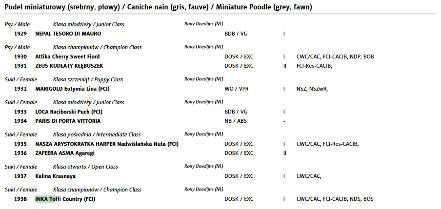 Konkurencja w naszej Rasie – bardzo silna. 🐩🐩🏋️ Sędzia: Rony Doedijns (NL) Miejsce: I Zdobyte tytuły: Najlepsza Dorosła Suka, Zwycięzca Płci Przeciwnej (BOS)🥇🏅 ❤️ ![]()